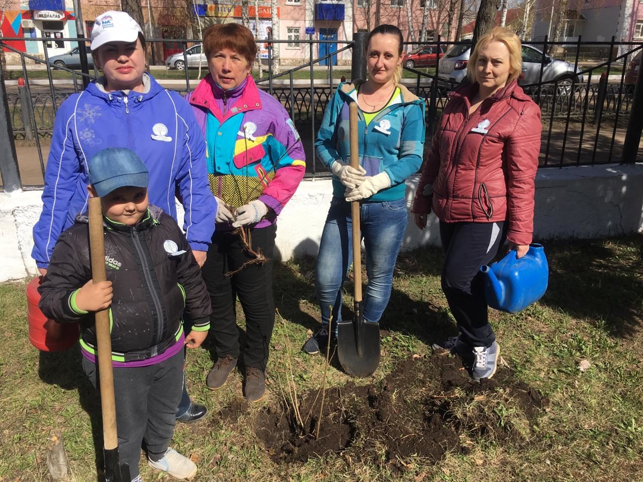 На территории Дворца детского юношеского творчества педагоги высадили 10 саженцев белой и фиолетовой сирени.